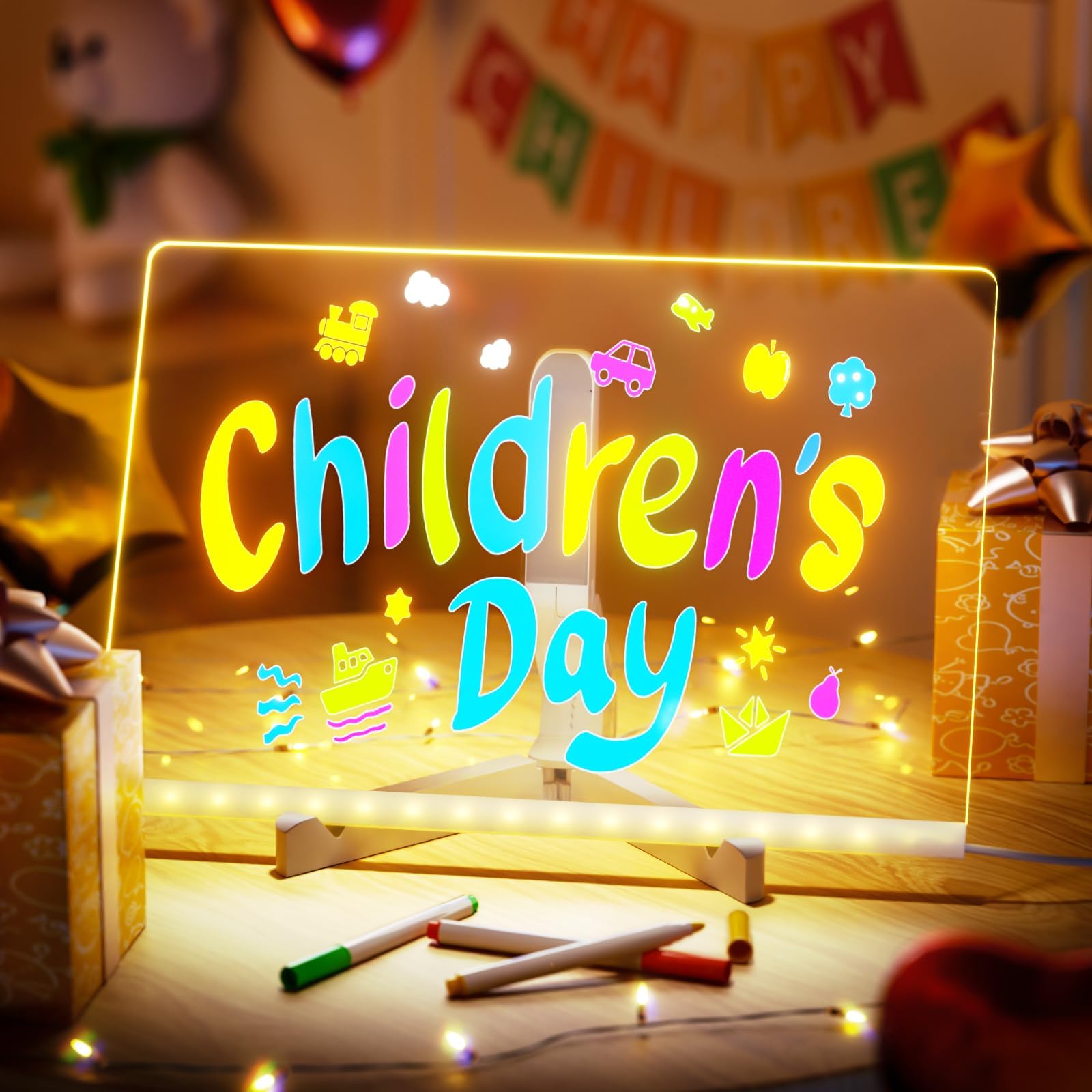 Glowing LED Writing and Doodle Board with Color Markers and Stand